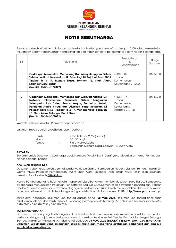 MAKLUMAN : Semua kontraktor yang berminat untuk menyertai sesi lawatan tapak adalah diwajibkan untuk menjalani ujian RTK sebelum memasuki kawasan bangunan Naza TTDI.