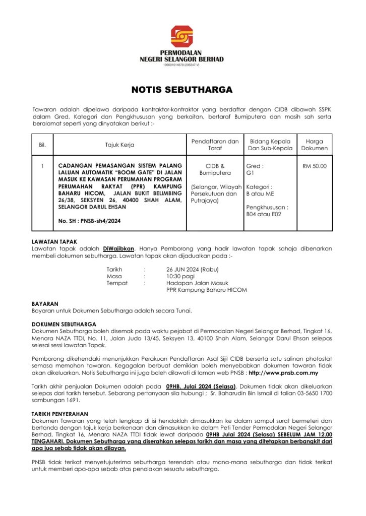 Cadangan Pemasangan Sistem Palang Laluan Automatik “Boom Gate” Di Jalan Masuk Ke Kawasan Perumahan Program Perumahan Rakyat (PPR) Kampung Baharu Hicom, Jalan Bukit Belimbing 26/38, Seksyen 26, 40400 Shah Alam, Selangor Darul Ehsan