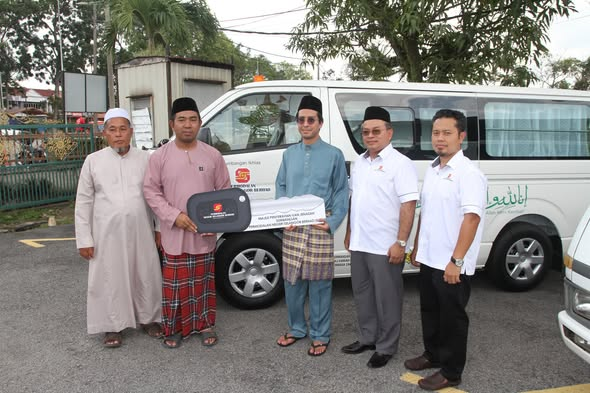 Penyerahan telah disempurnakan oleh Y.M. Raja Ahmad Shahrir Iskandar Bin Raja Salim, Ketua Pegawai Eksekutif PNSB yang telah menyerahkan sumbangan van jenazah tersebut kepada Encik Akmal bin Auzai, Nazir Masjid Jamiul Hasaniah.